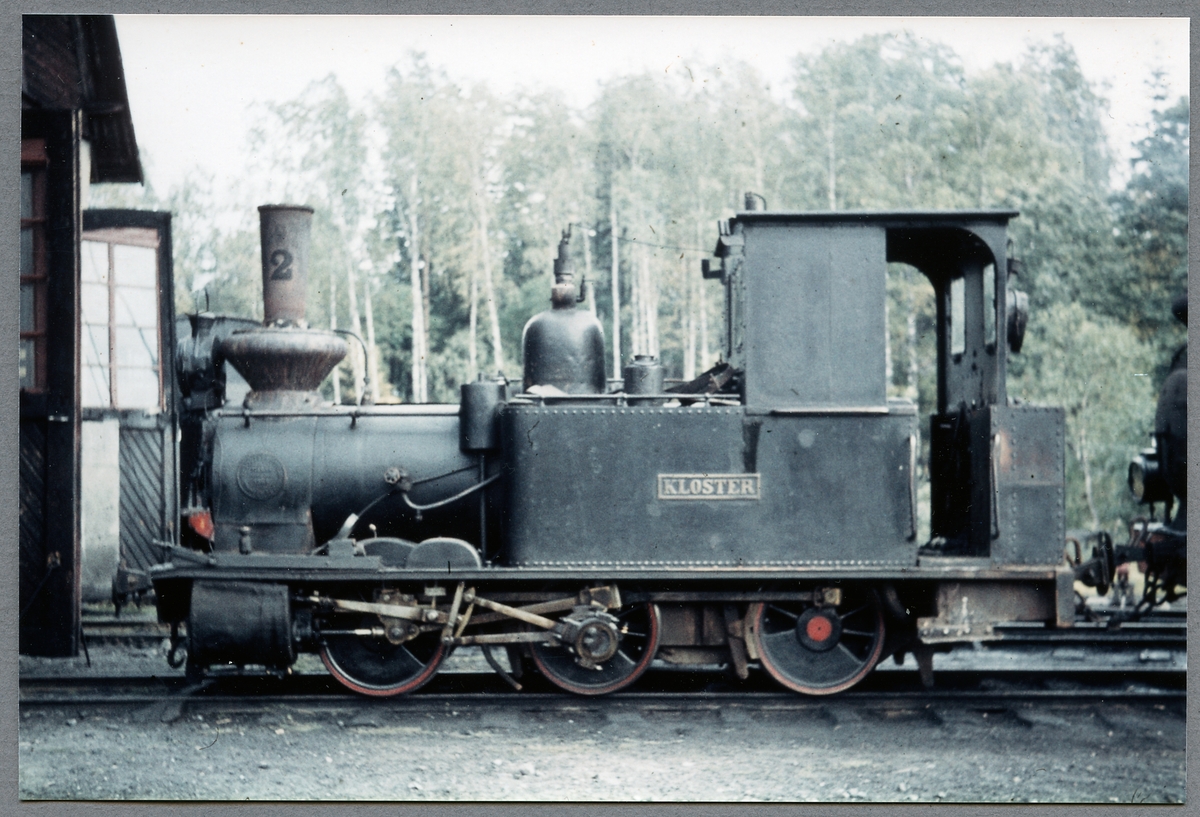 Byvalla - Långshyttans Järnväg, BLJ lok 2 "Kloster" vid lokstallet i Långshyttan.