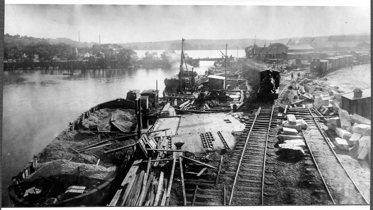 Banarbete vid Liljeholmen station. Statens Järnvägar, SJ Kd ånglok.