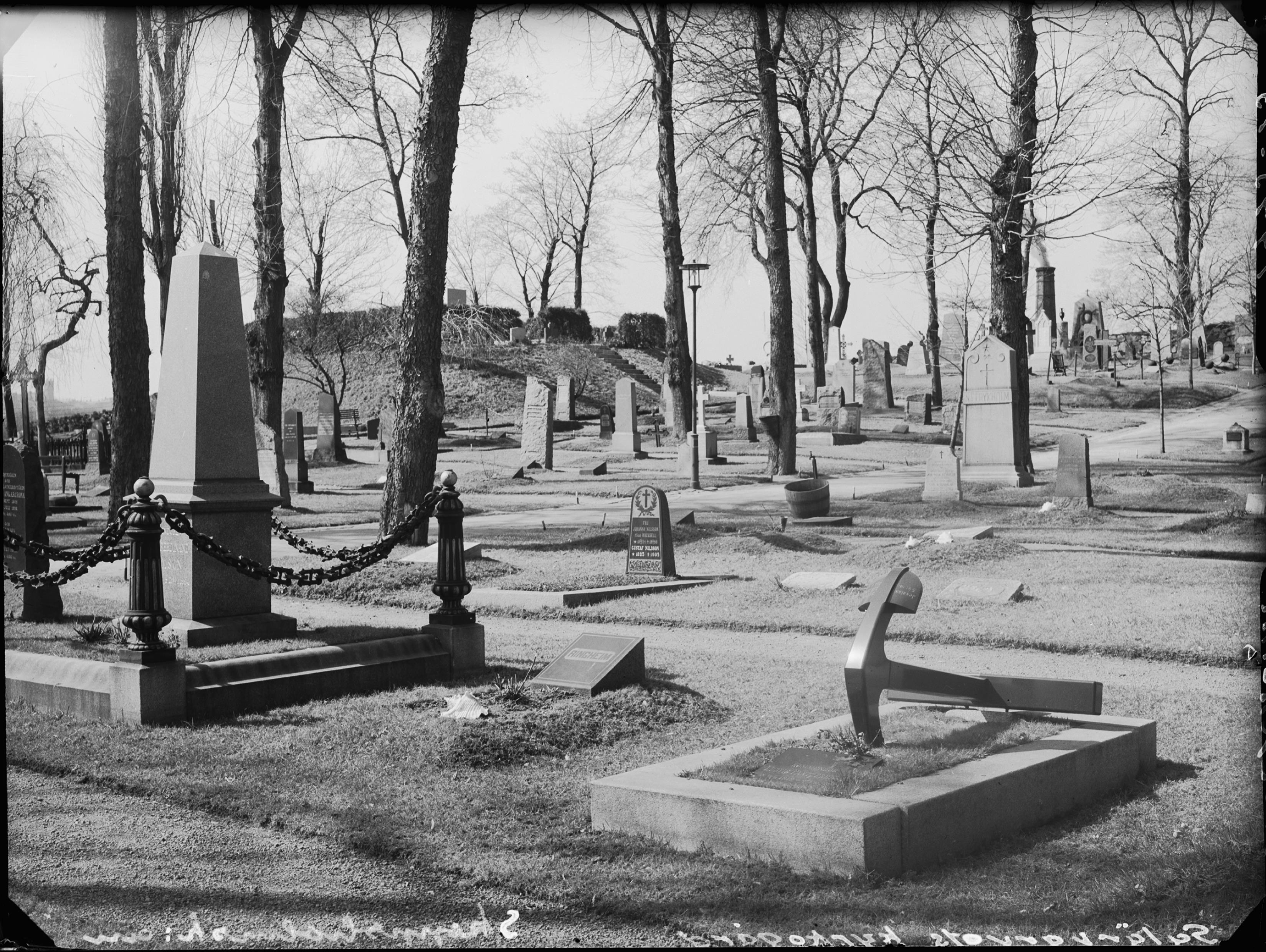 Kyrkogården, utsikt mot kullen med urngravarna.