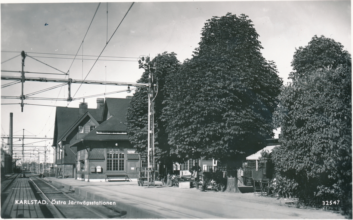 Stationen tillkom 1903 enligt överenskommelse mellan SJ, Statens Järnvägar och KMJ, Karlstad - Munkfors Järnväg. Från 1970 ingick stationen i Karlstad Central. Stationshuset rivet 1971. Vackra kastanjeträt i perrongen.