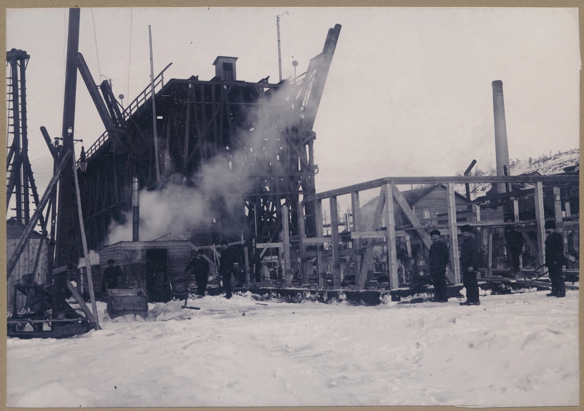 Titel: Ombyggnad av malmutskeppningsbryggan på Svartån invid Luleå station. Vintern 1906-1907. Ångdriven kran.