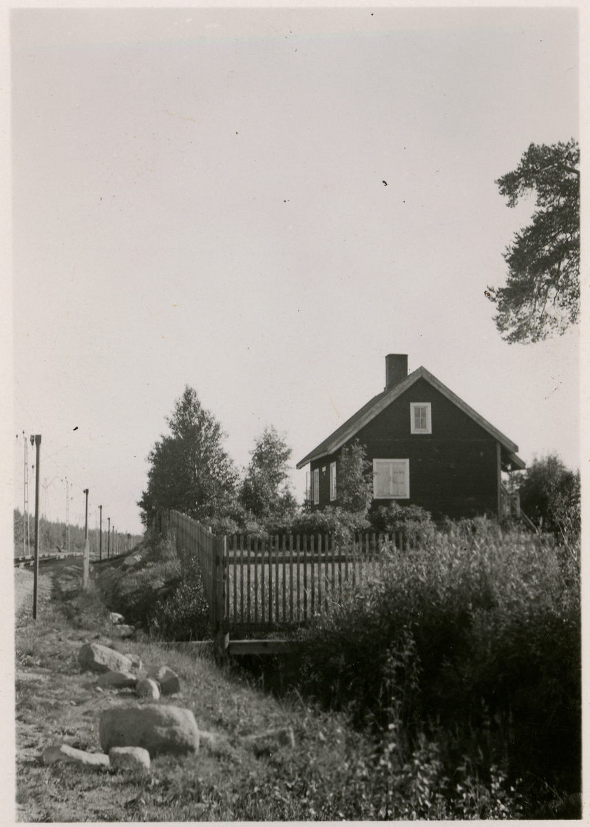 Sverige & Norge Järnväg, S&NJ, Banvaktstuga Nr 422. Samondivadra? vid Polcirkeln. Vårt träd i vår trädgård till höger.
