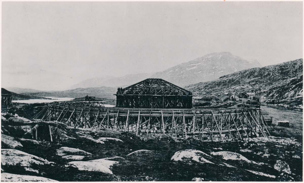 Titel: Lokstallet vid Riksgränsen under uppbyggnad.