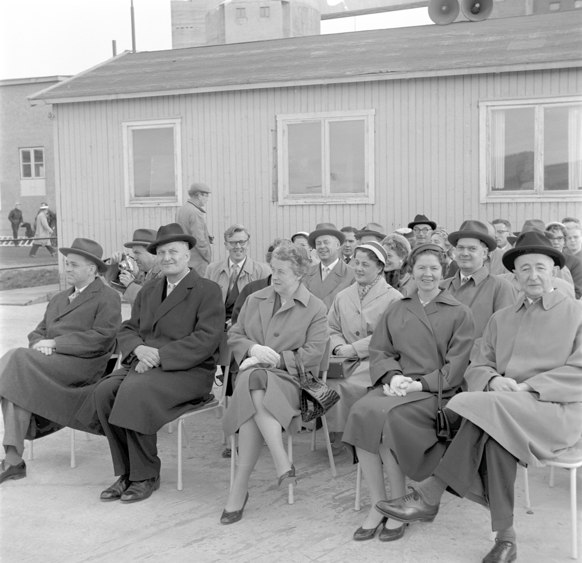 Grupporträtt vid invigningen av bansträckan Kiruna C - Tuolluvaara. Främre raden, andra från vänster generaldirektör Erik Upmark.
