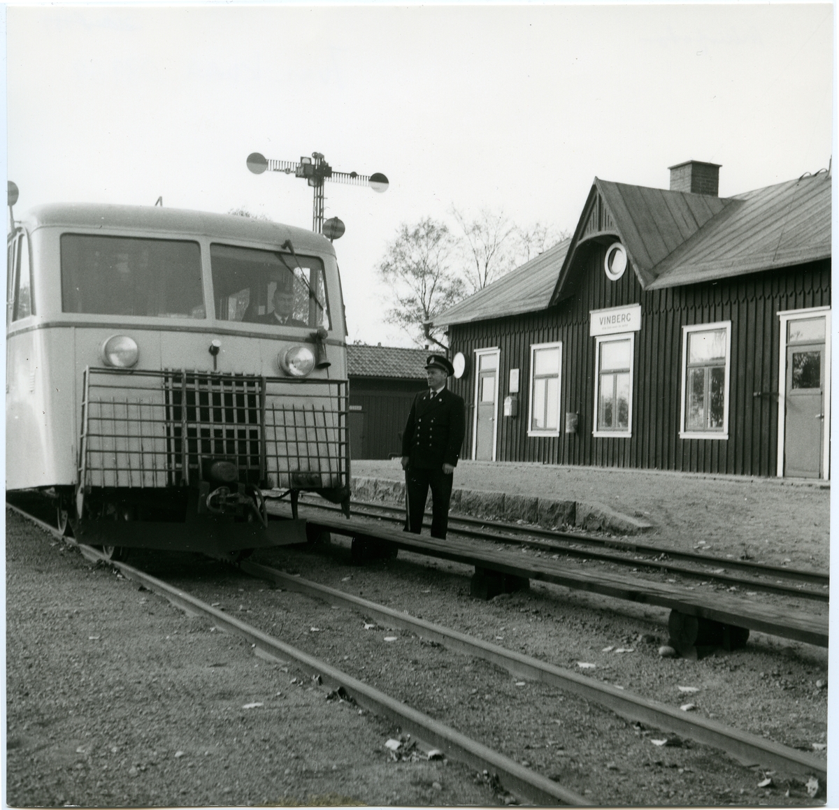 Vinberg station år 1959 med (Ftb)Förste trafikbidträde Sune Carlsson.