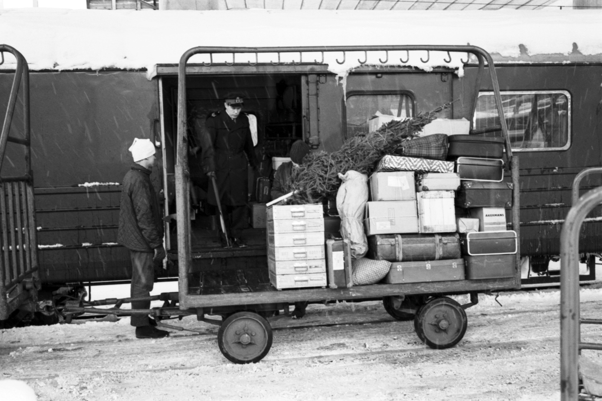 Jultrafiken vid Stockholm C, inlastning av bagage och resgods.