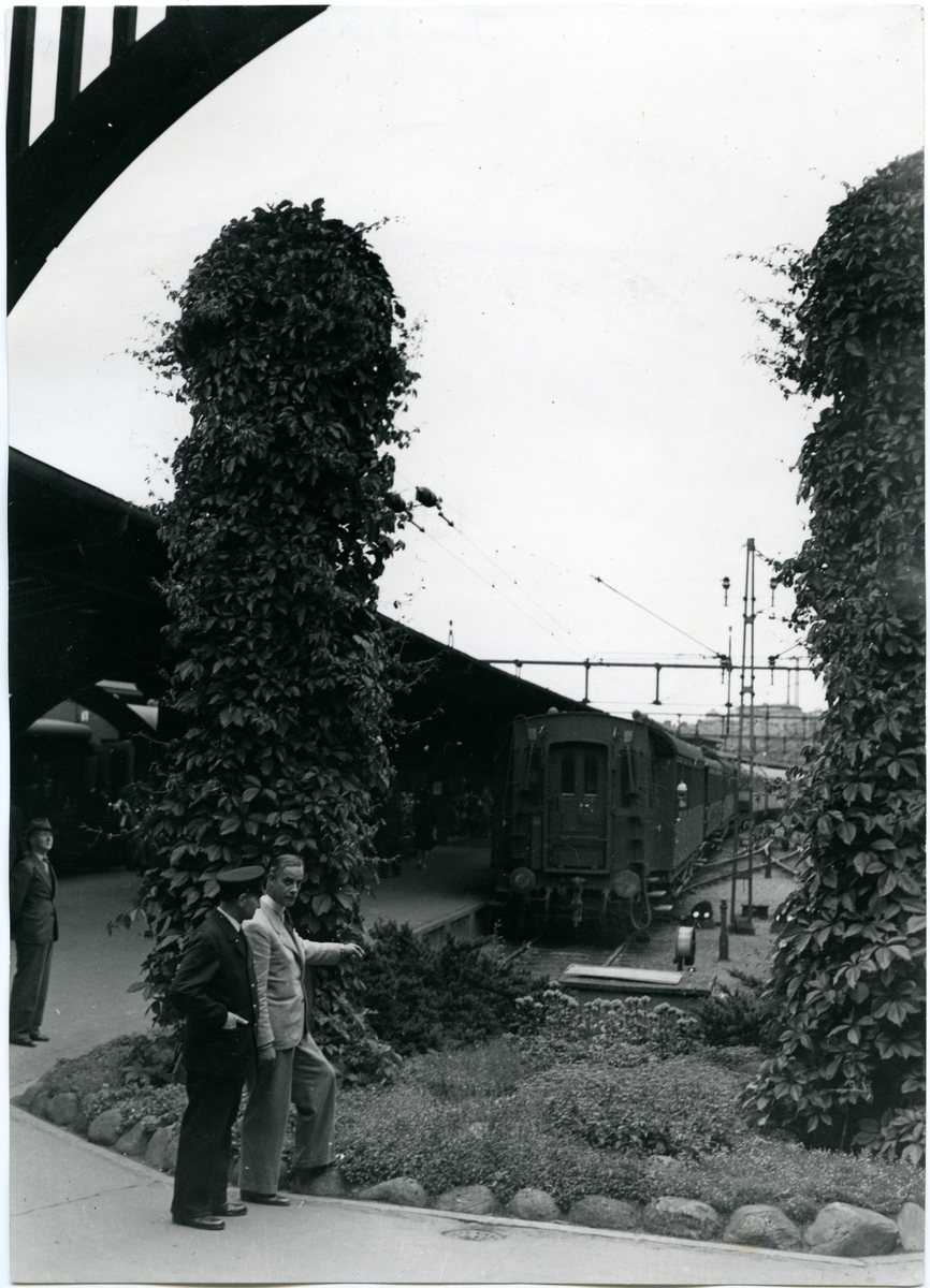 Titel: Trädgårdsdirektören visar plantering vid Stockholm Centralstation.