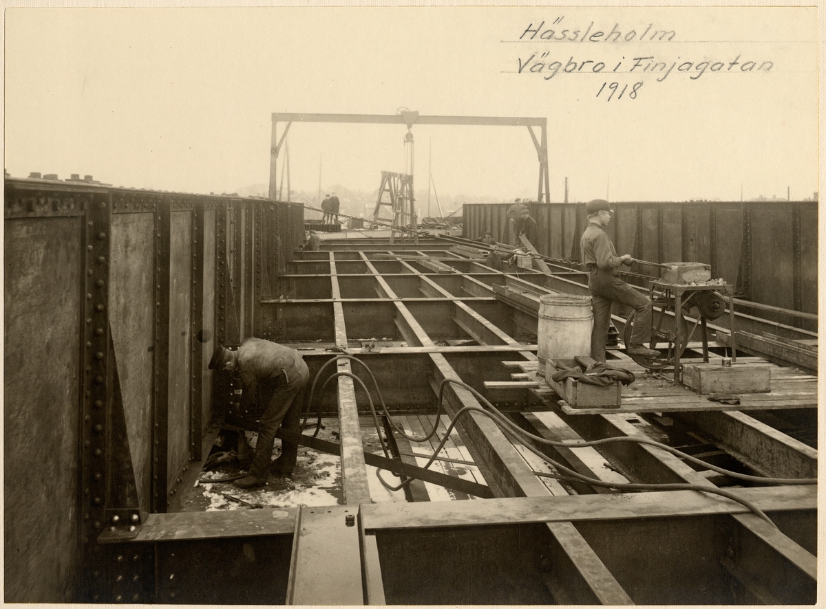 Titel: Byggarbete vid vägbro i Finjagatan.