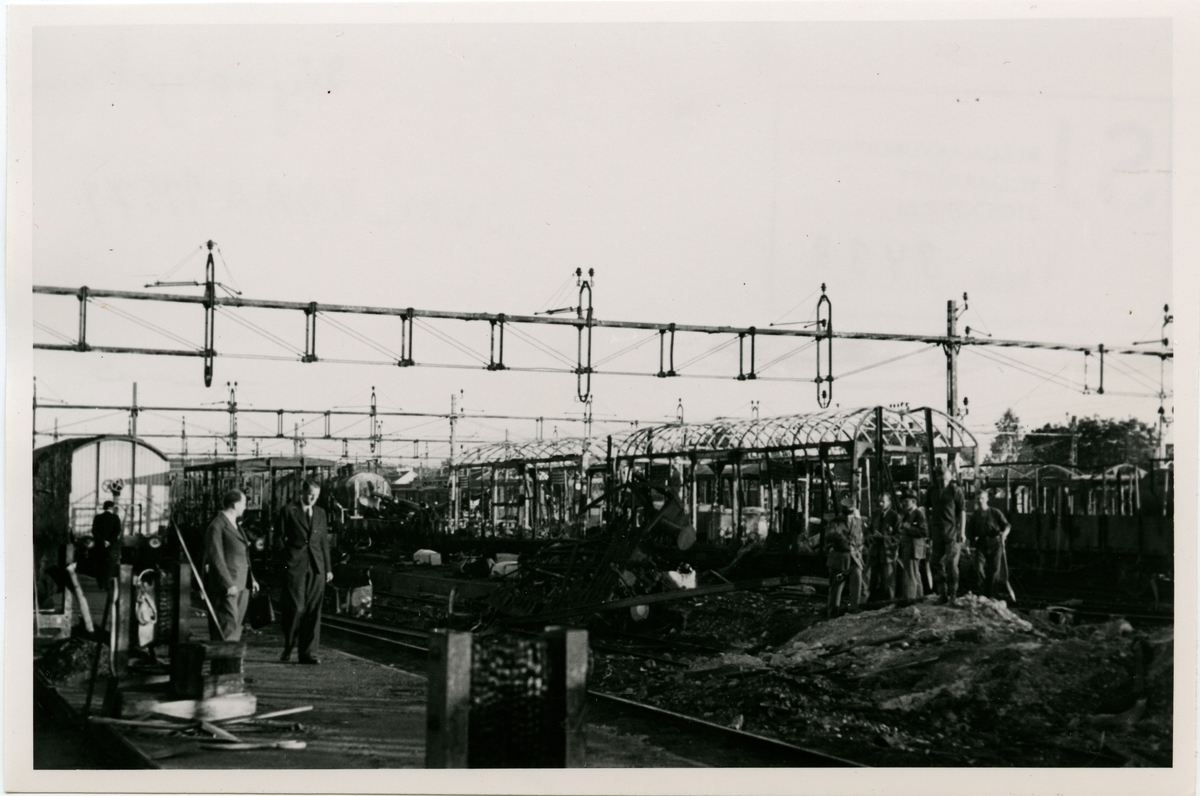 Krylbo-olyckan. Krater, förvridna och utbrända vagnar.