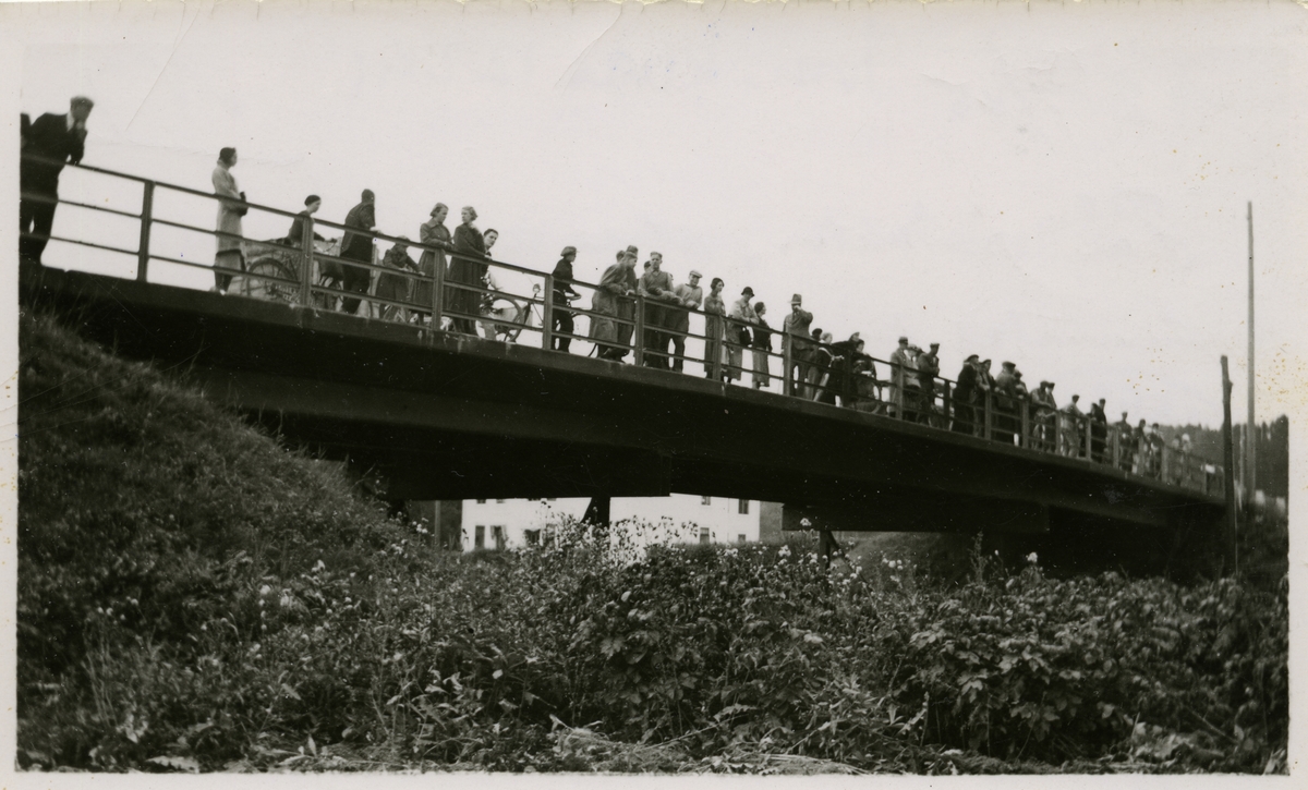 På viadukten strax intill olycksplatsen samlades på några få minuter ett stort antal åskådare.