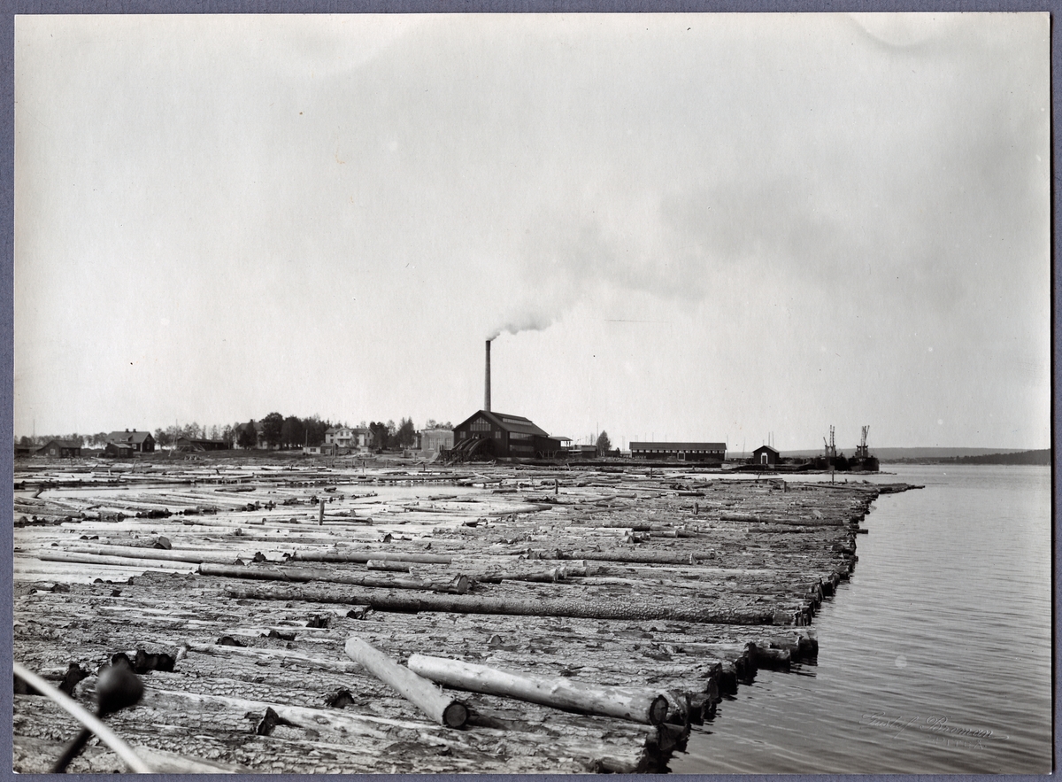 Titel: Slipersfaktoriet Piteå. Timmermagasinet sett från sjön.