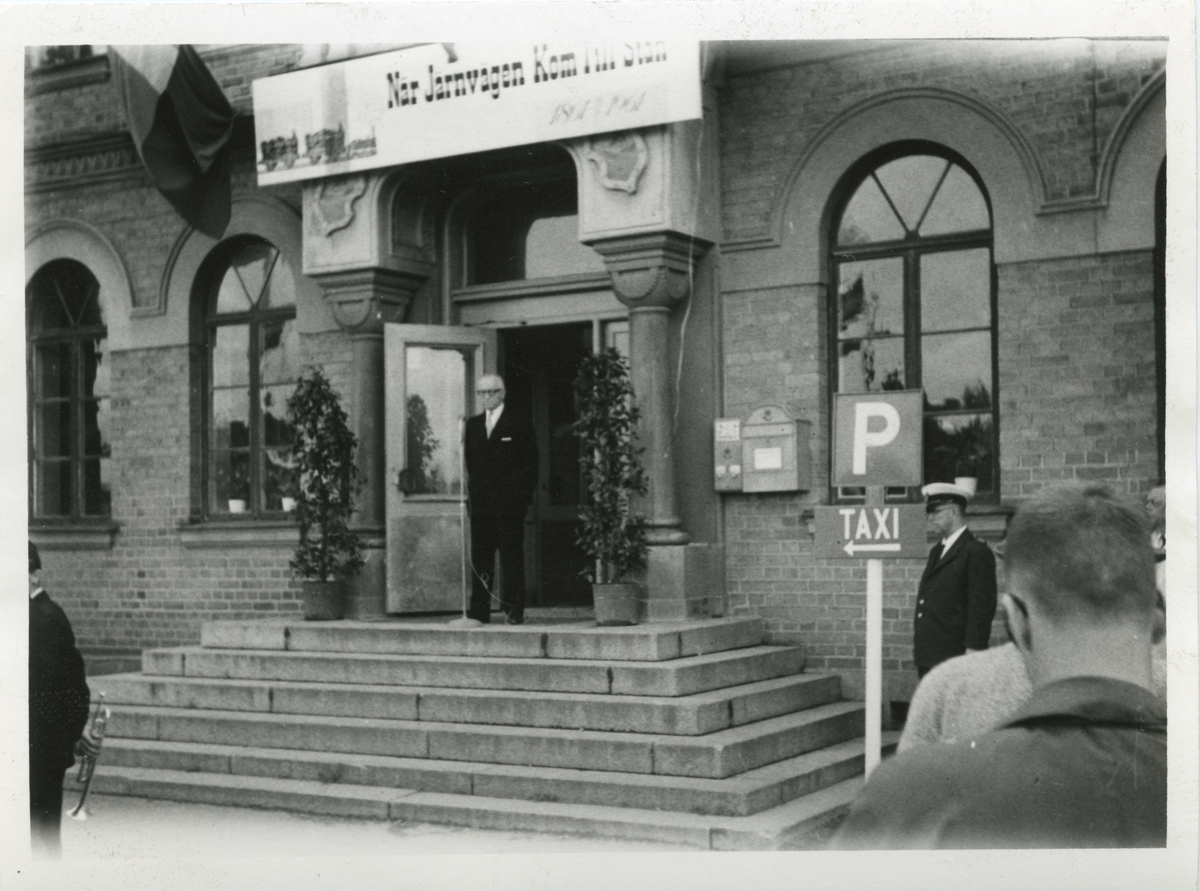Docent Carlstedt håller invigningstal i Söderhamn 1961-09-15 inför utställningen " När Järnvägen kom till stan".
