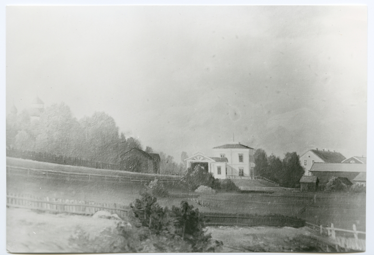 Titel: Västra gaveln av gamla banans stationshus och banhallen i Söderhamn.