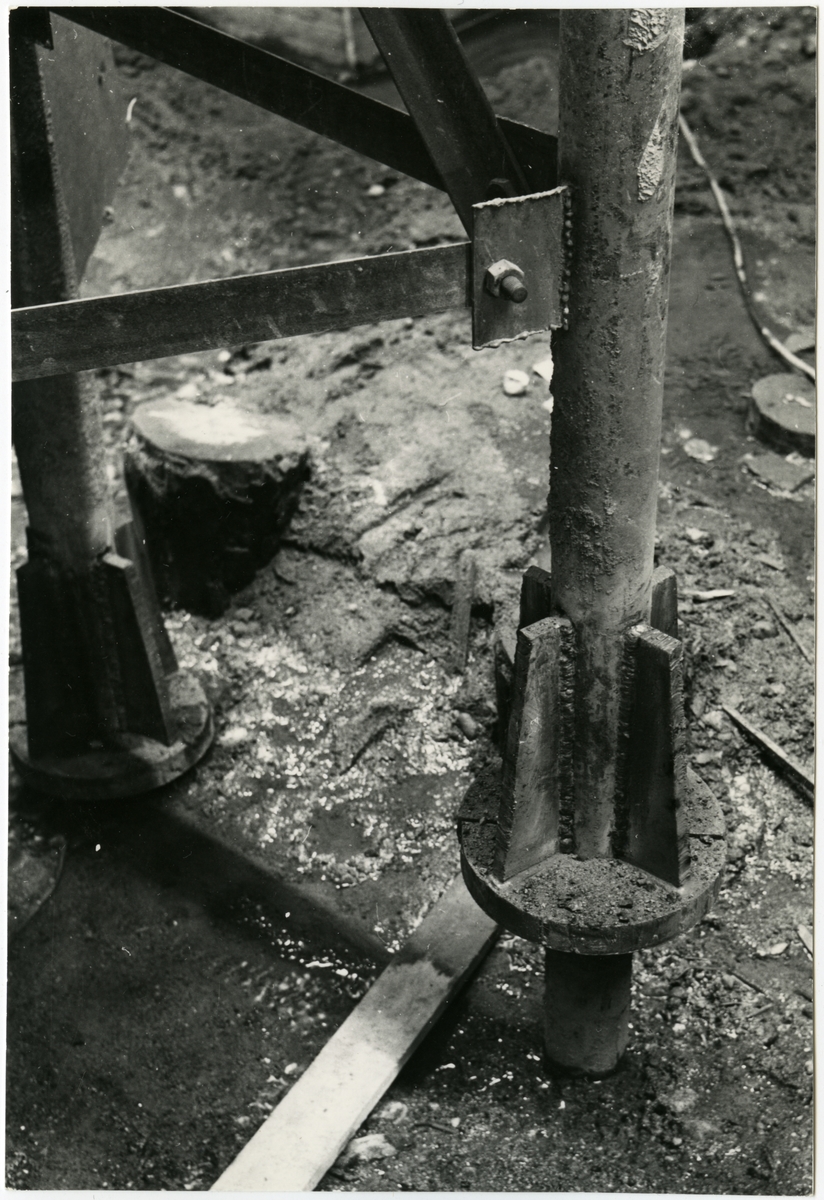 Statens Järnvägar, SJ, Stockholm centralstation ombyggnaden, del av användig stålpålar med ingjutningskrans i tunnelplast.