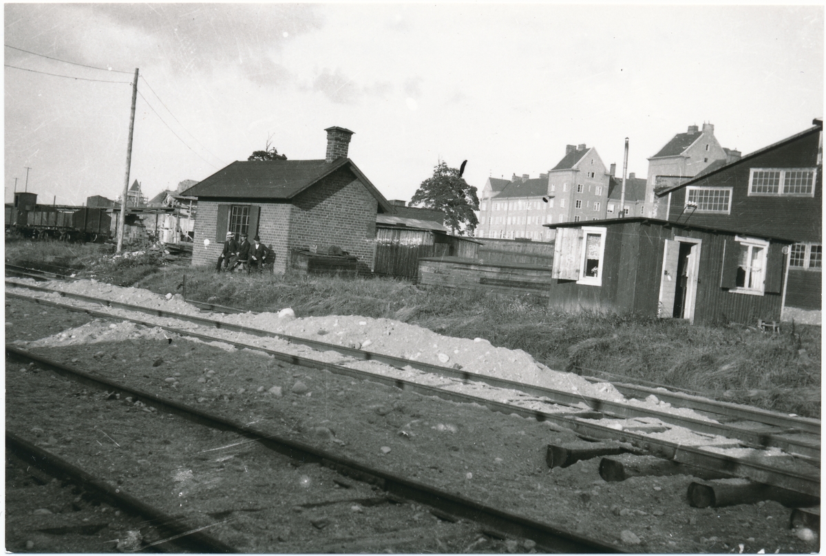 Titel: Vy vid Stockholms norra bangård under uppbyggnad.