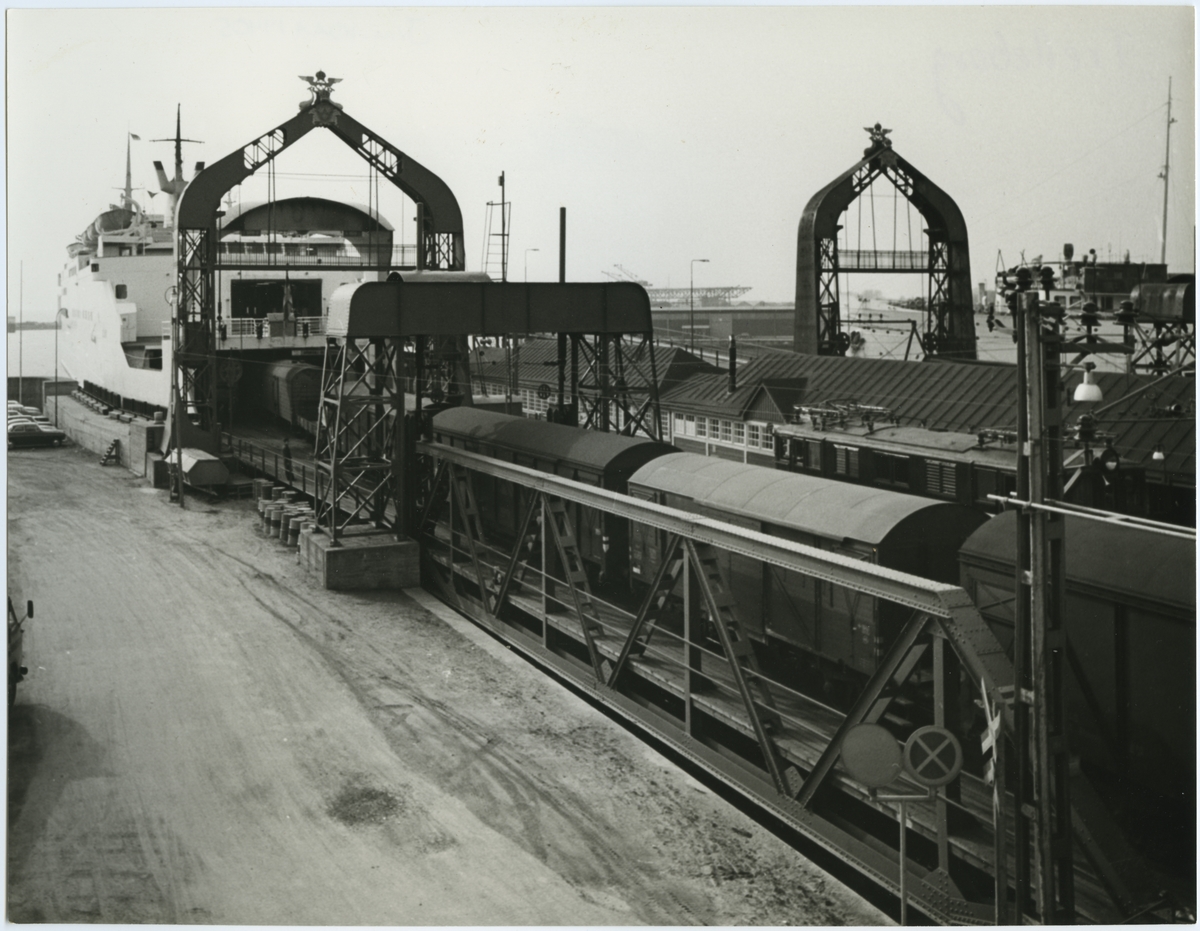 Titel: Lastning av godsvagn på färjan i Trelleborgs färjeläge.