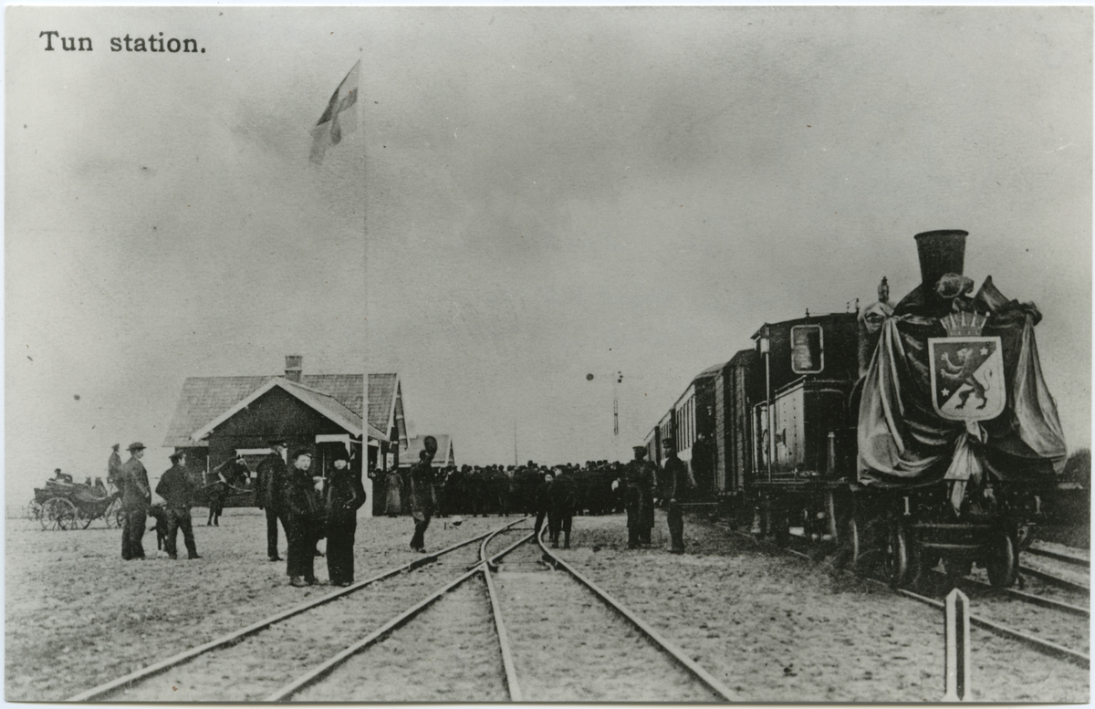 Titel: Tun station. Invigning Lidköping-Kållands järnväg.