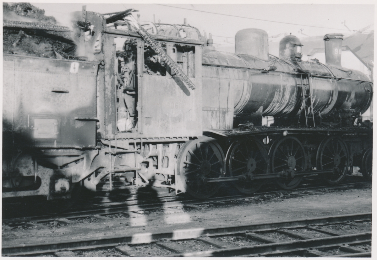 Brandskadat lok Statens Järnvägar, SJ E2 906 tillverkad av Motala Verkstad 1907 tillverkningsnummer 373.