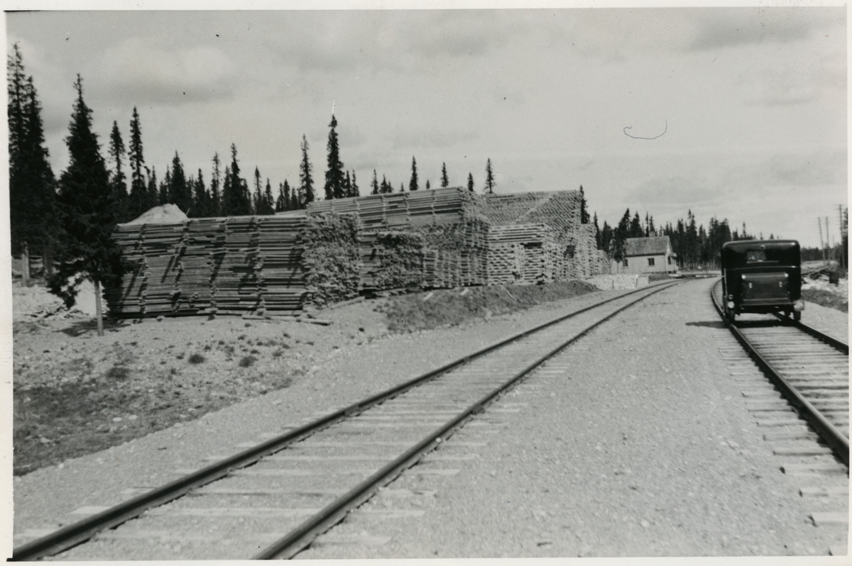 Titel: Virkesupplag och bangård vid Utterträsk station.