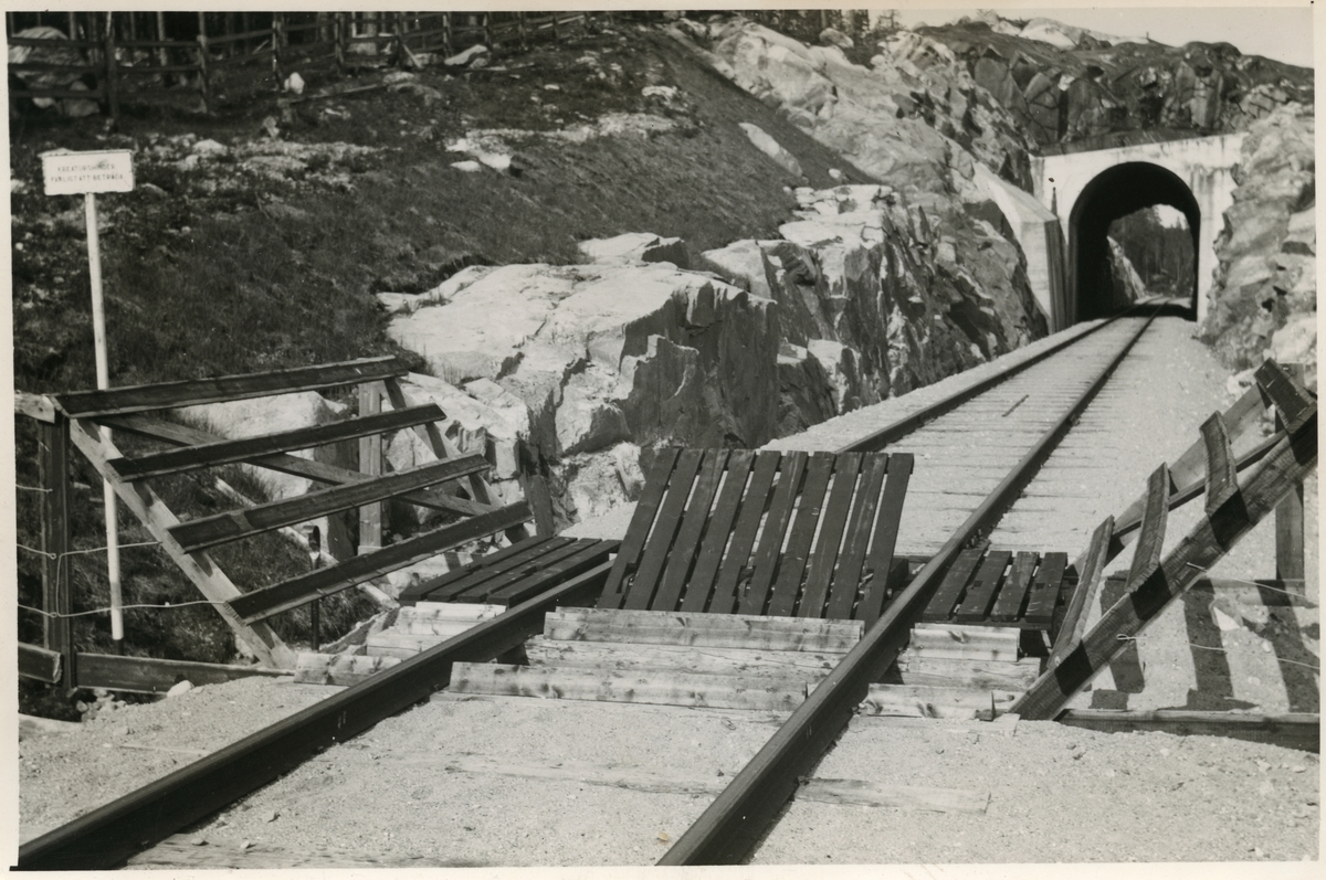 Kreaturshinder vid inlandsbanans enda järnvägstunnel, strax utanför Jokkmokk på sträckan Sorsele - Jokkmokk.