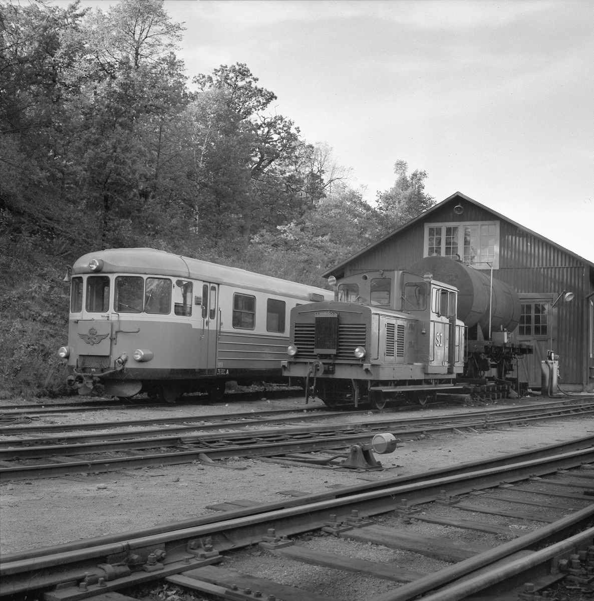 Statens Järnvägar, SJ Z 227 lokomotor och SJ Ybo5t 919 motorvagn i Karlshamn.