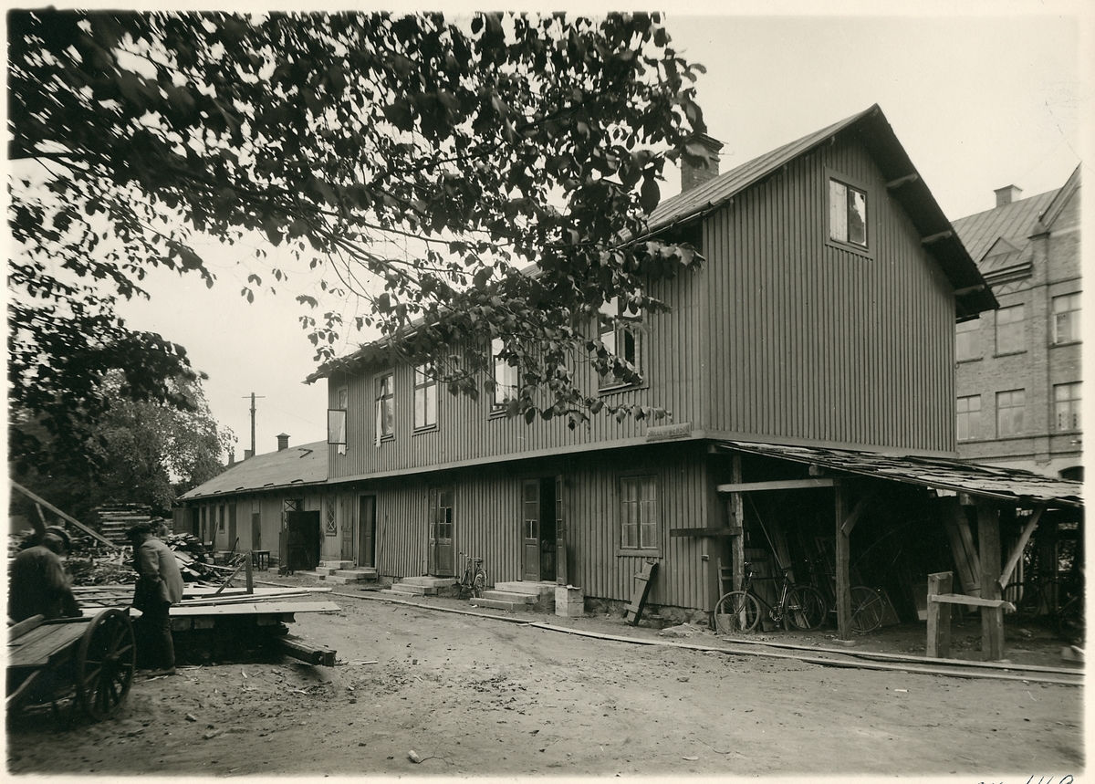 Titel: Uthus intill järnvägshotellet i Laxå.
