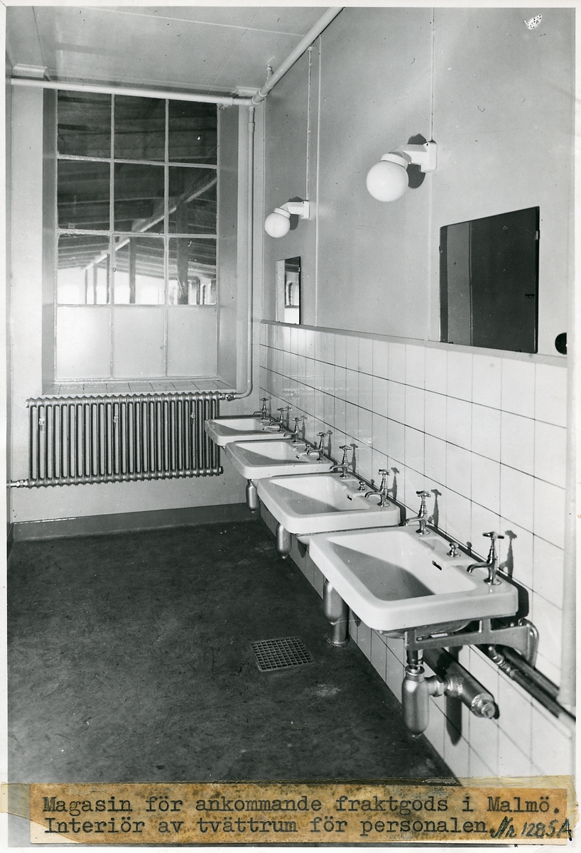 Tvättrum för personal, magasin för ankommande fraktgods vid Malmö centralstation.
