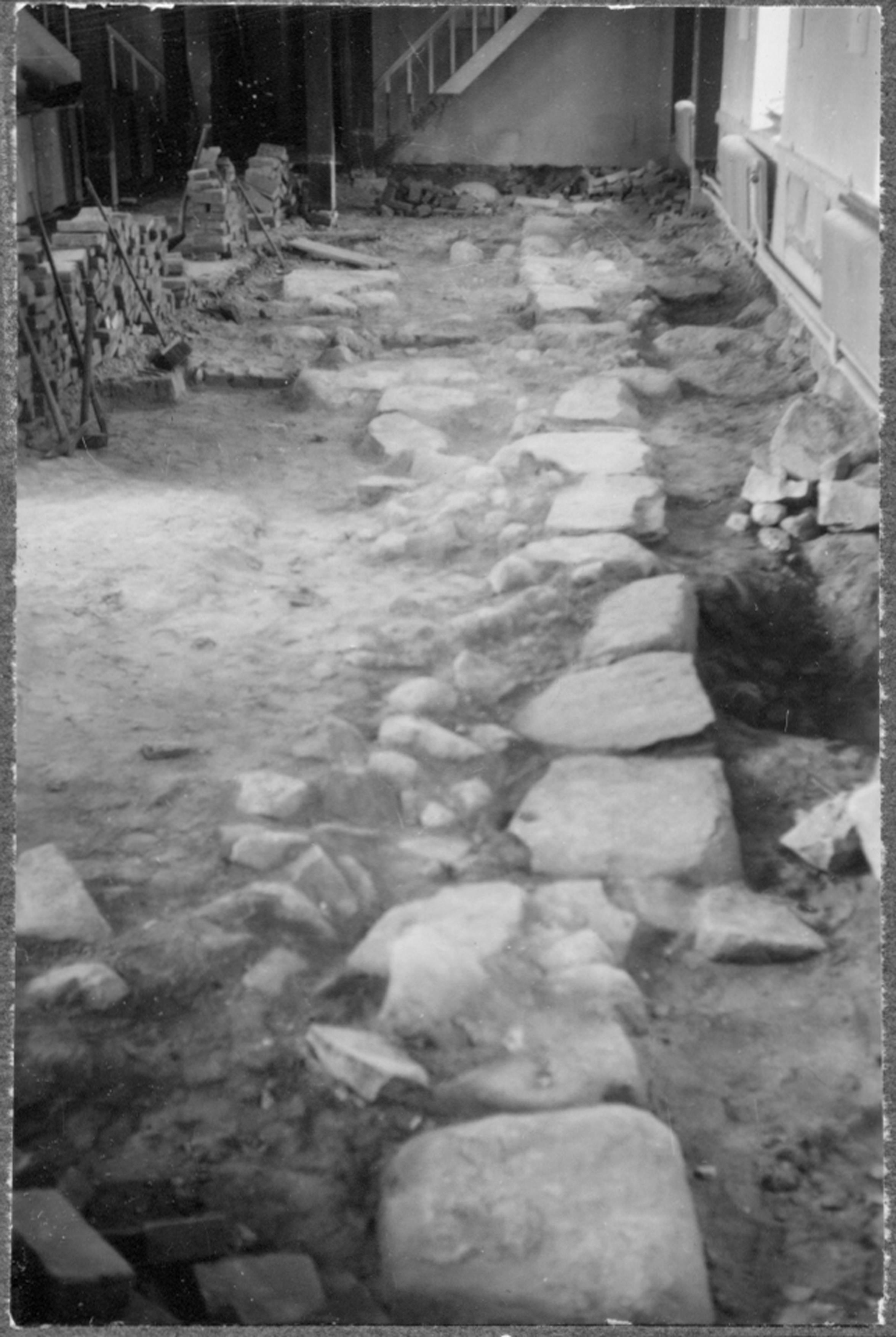 Norra grunden till den rivna medeltidskyrkan. Åt väster.