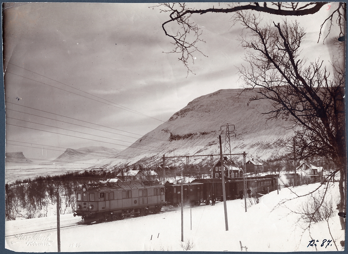 Snälltåg vid Björkliden station med Statens Järnvägars, SJ Pa 28.