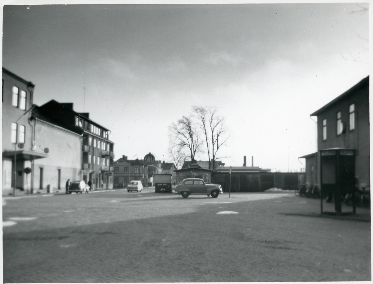 Titel: Stationsområdet framför Vetlanda järnvägsstation. Bangårdsgatan tll vänster.