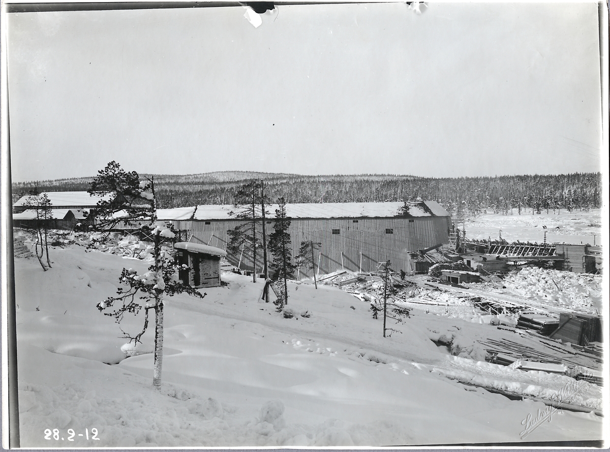 Varmhus för betonggjutning i Porjus vintern 1912.