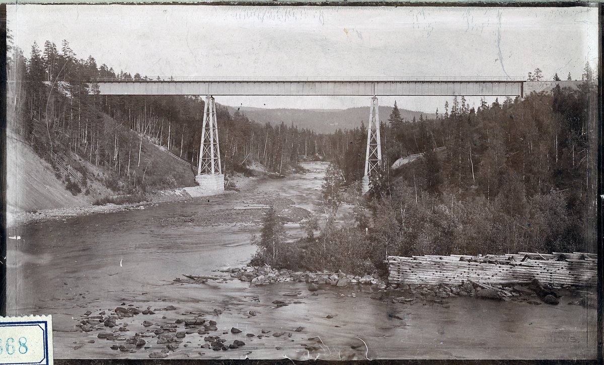 Titel: Bron över Lögde älv på linjen mellan Västansjö och Norrfors längs Norra Stambanan.