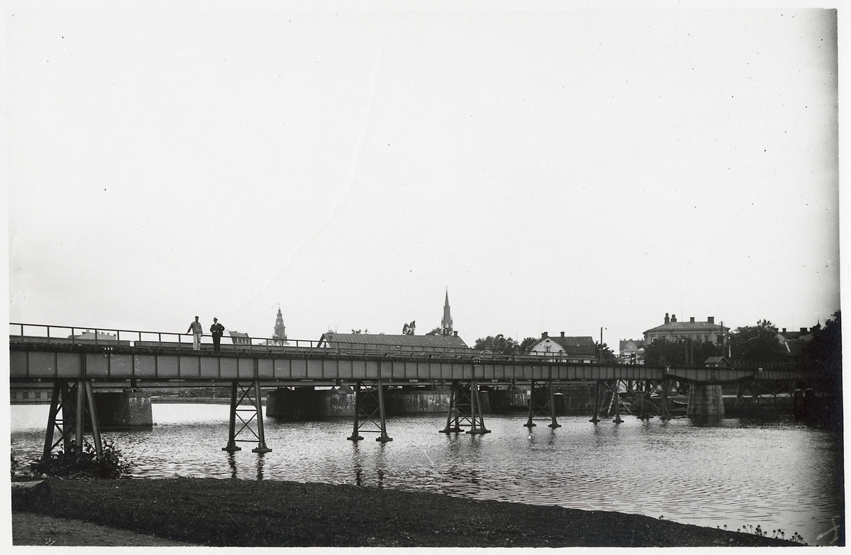 Titel: Fastbro med svängspann över Stångån vid ingången till Linköping.