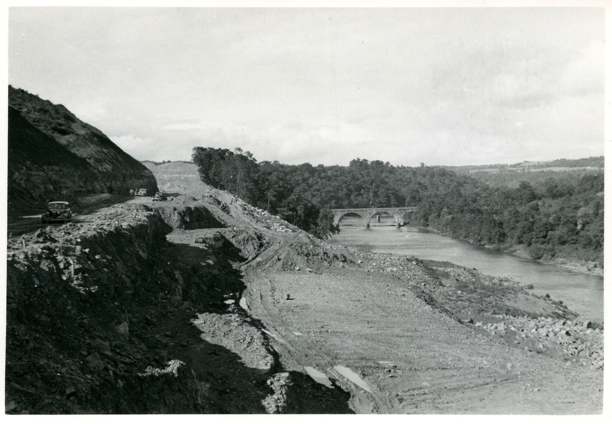 Titel: Vy över vattendrag och bro. Bilder från Bantekniska kontorets studieresa i USA.