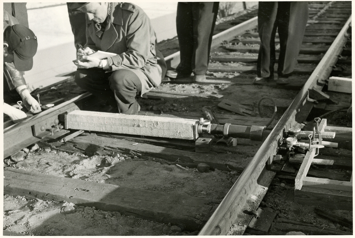Titel: Banarbete efter urspårning av tåg 93, Nordpilen, på sträckan mellan Simeå och Undersvik 1956-03-27.