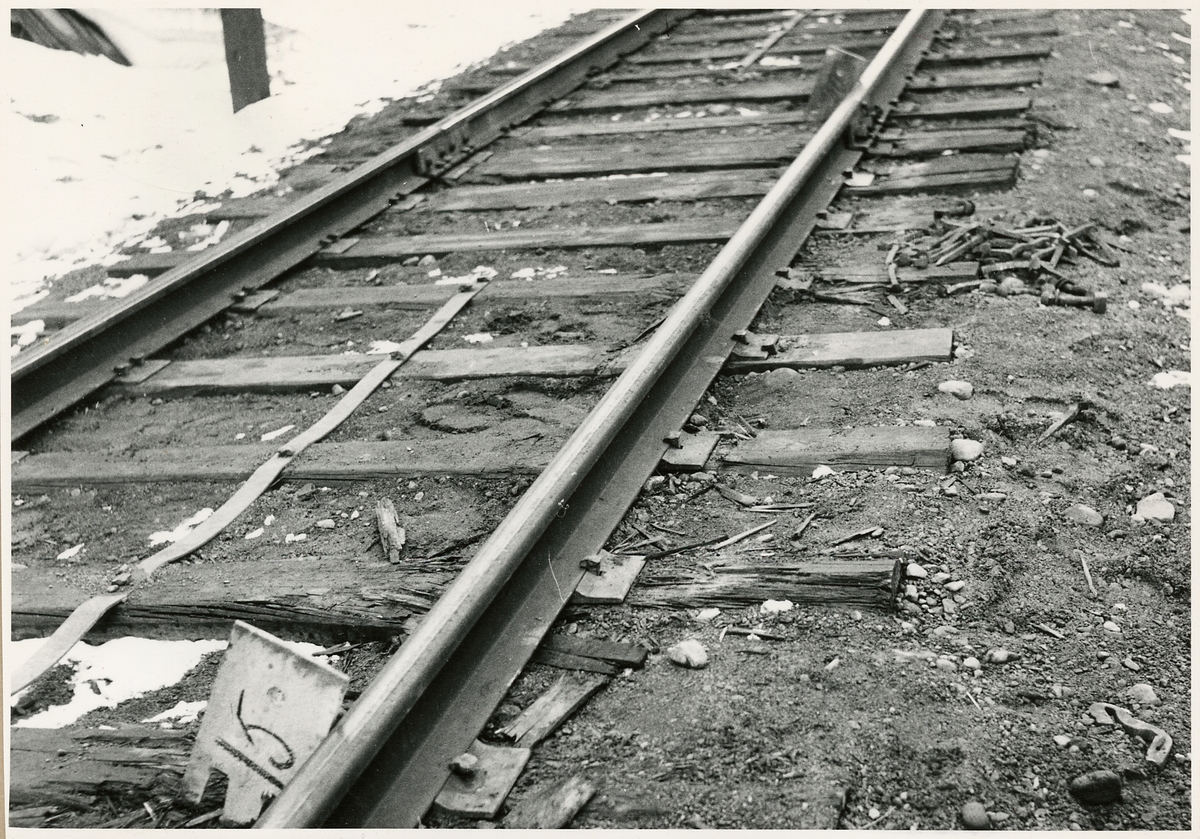 Del av bangården efter olyckan 1956-03-29 då tåg 93, 'Nordpilen, spårade ur vid Granbo station.