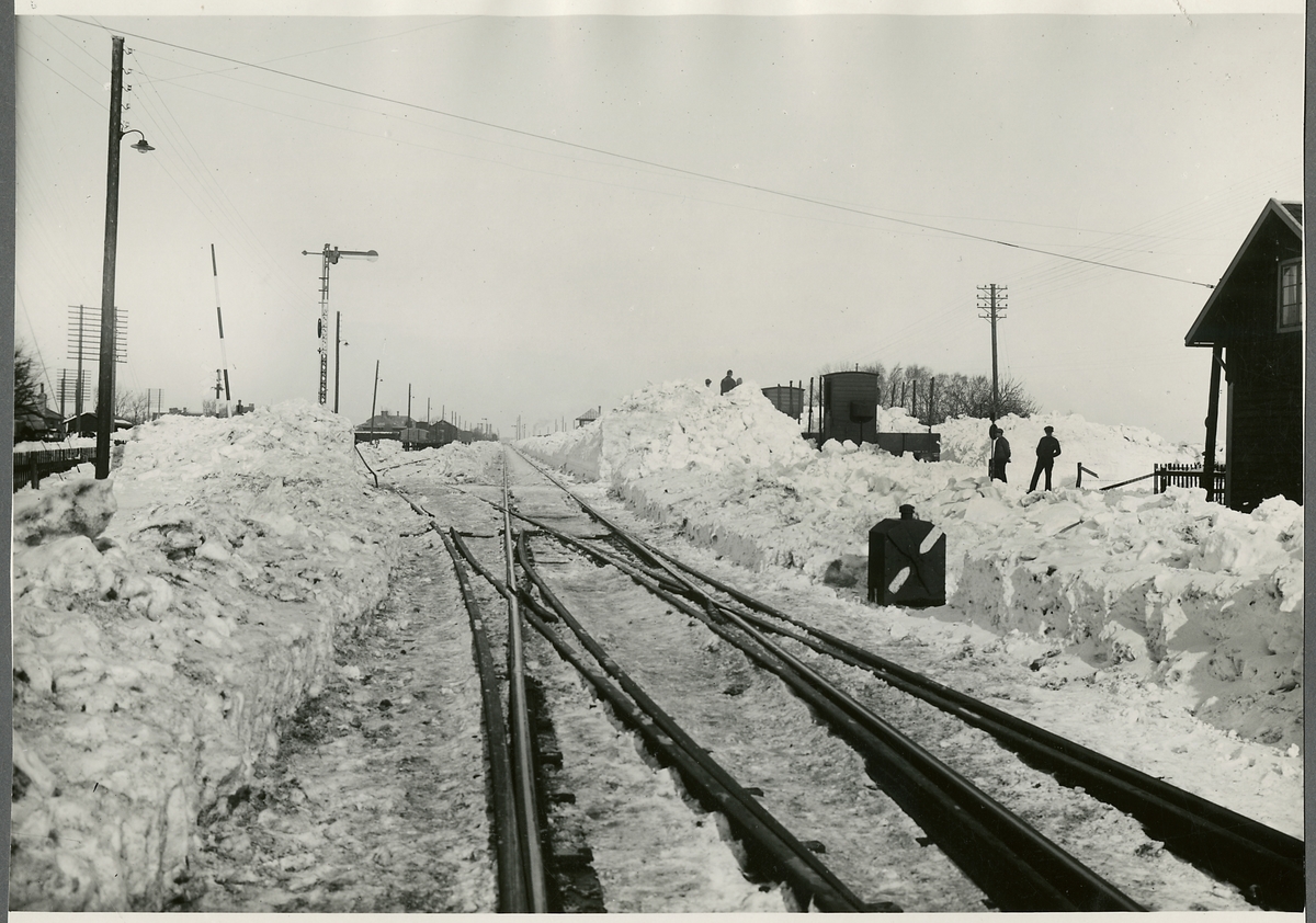 Bangården vid Stångby. Södra änden, bilden tagen i norrgående riktning.