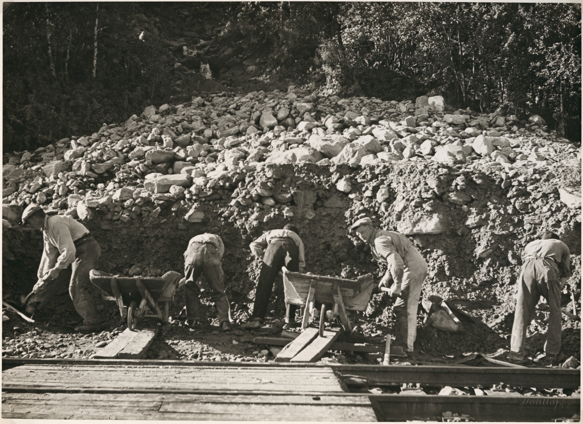 Titel: Pågående röjningsarbete efter ras på linjen mellan Narvik och Riksgränsen i närheten av Straumsnes.