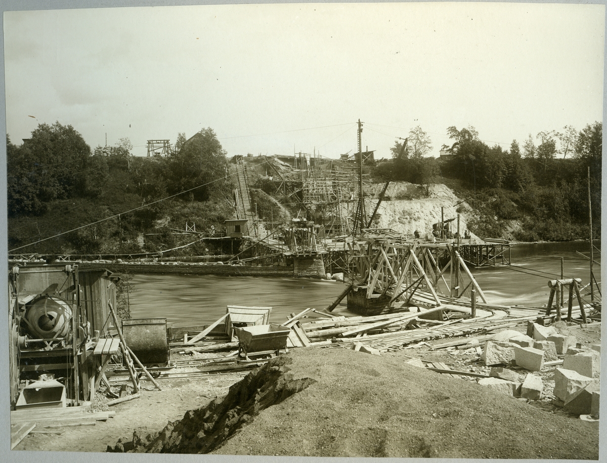 Slind. Statens Järnvägar, SJ. Brobygget över Skellefte älv i augusti 1910.