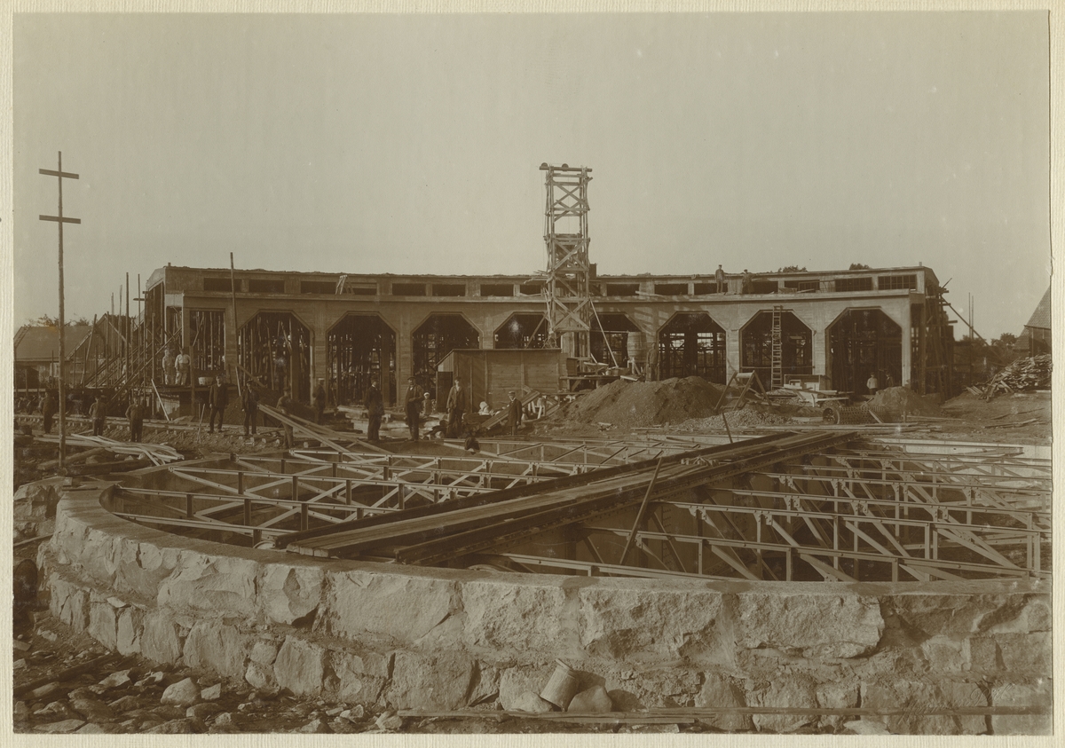 Titel: Lokstallarna och vändskiva under upp byggnad.