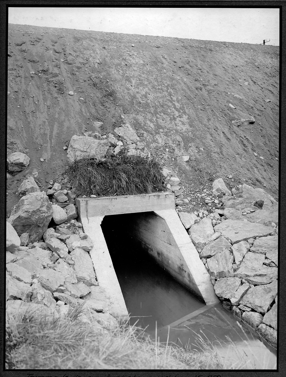 Trumma 1,2 x 1,8 meter av järnbetong vid 15,759 kilometer mellan Norrvrå och Vagnhärad. Statsbanan Järna - Norrköping.