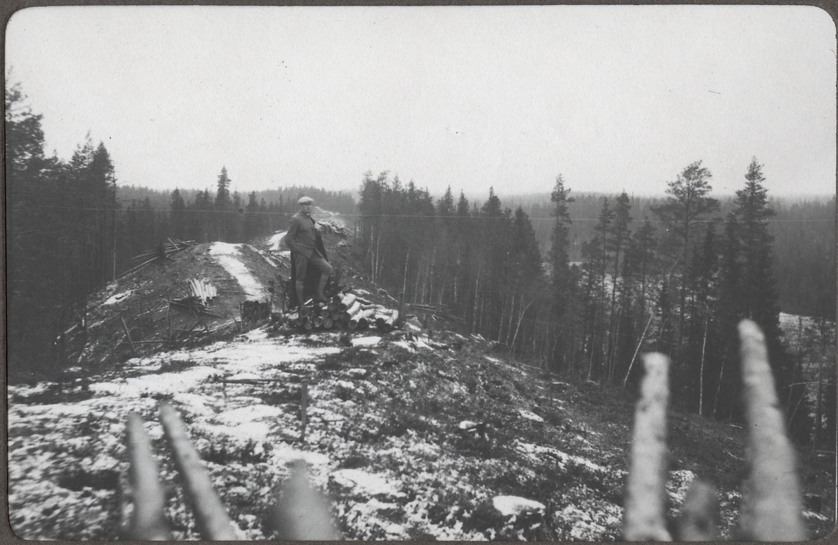 Titel: En man står på Gladabergskammen före terrasseringen från söder.