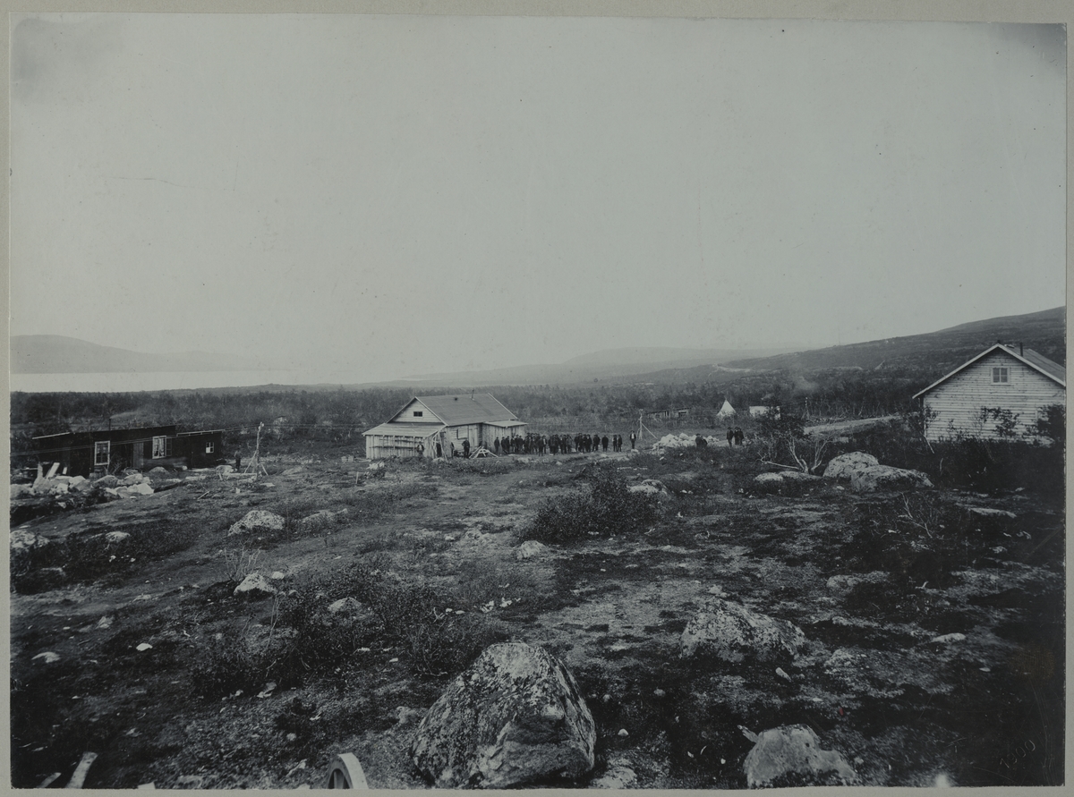 Från vänster, Hotellet, Avlöningsbaracken och Proviantförrådet