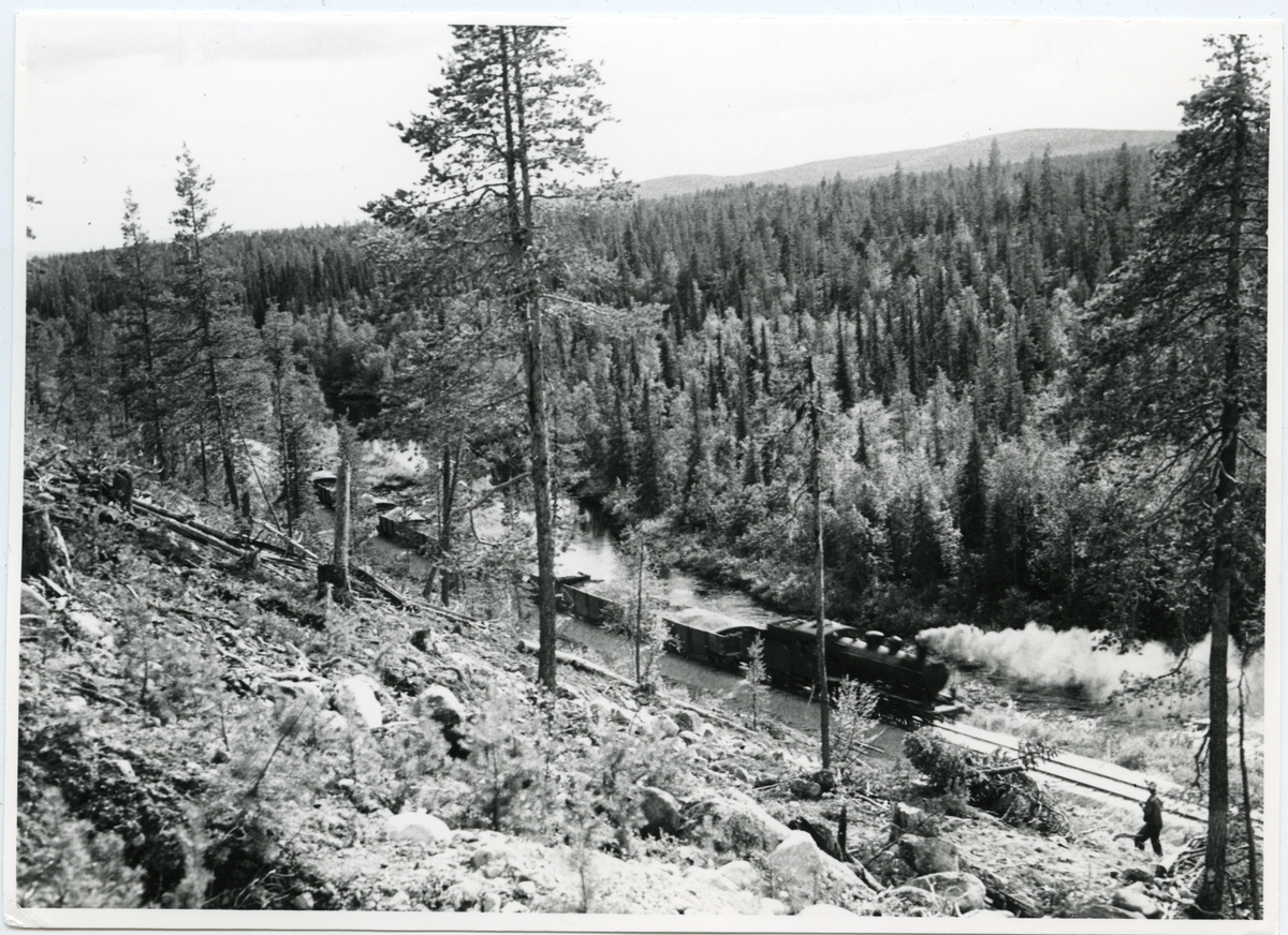 Titel: Banbyggnad Inlandsbanan. Text på försättsblad: Troligen på linjen Forsmo-Hoting Bandel 079 och 080.