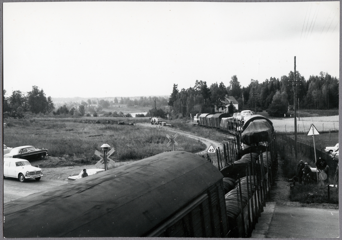 Titel: Fjärrgodståget från Linköping vid ringverket på linjen mellan Gamleby och Almvik.