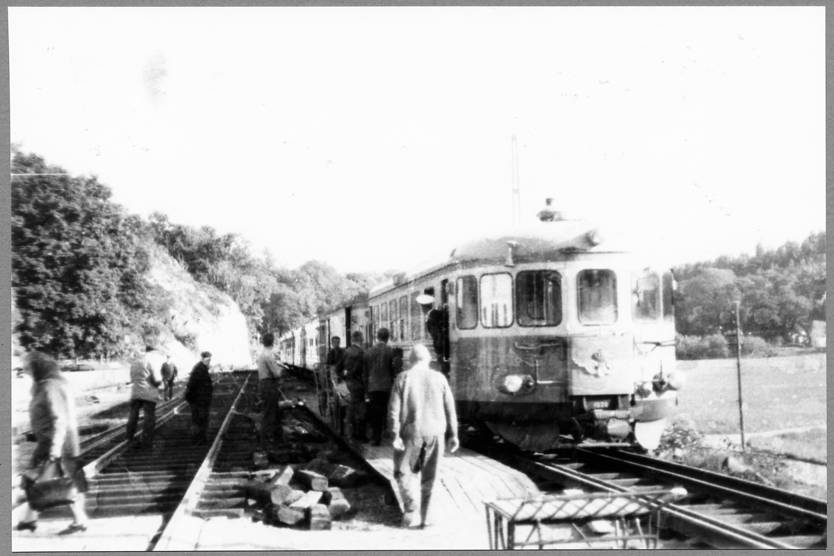 Första persontåg på normalspår anländer till Överums station från Linköping.