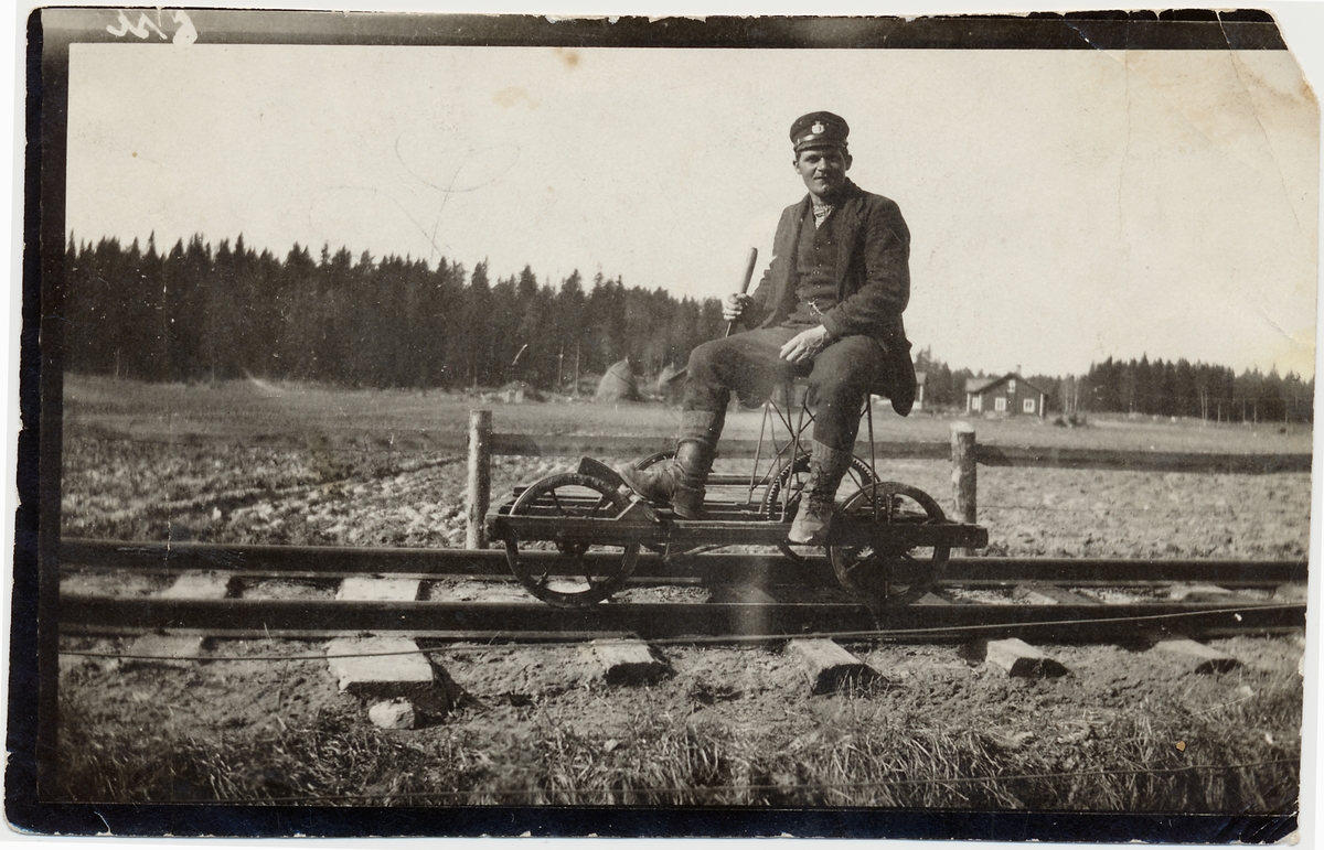 DHJ, Dannemora Hargs Järnväg, Banvakt Sigfrid Andersson, Risinge, här på en äldre dragdressin.