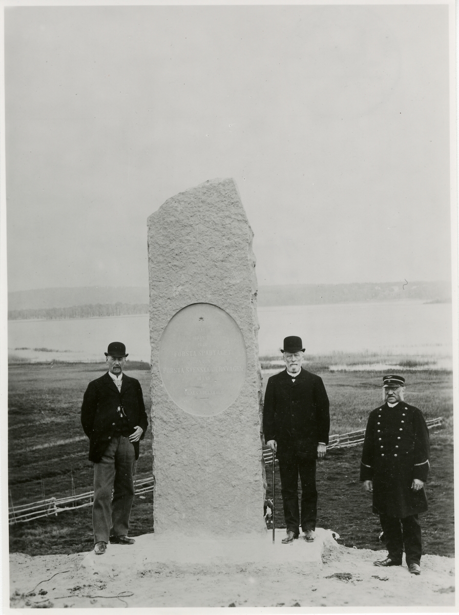 Titel: Tre män vid minnesstenen vid Illberg 1899.