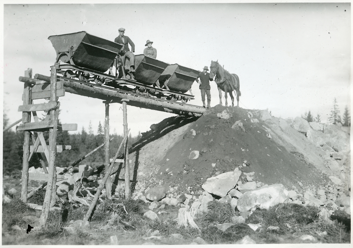 Titel: Bankfyllnad 10/200 längs linjen. Hästar användes vid bygget.