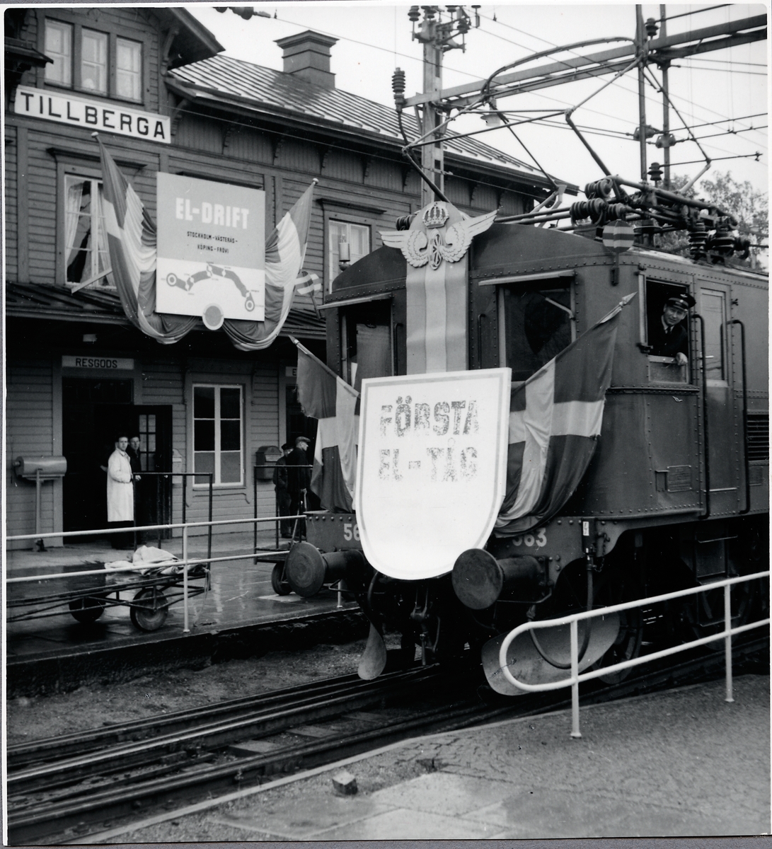 Tillberga station med loket Statens Järnvägar, SJ Du 563.